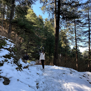 We took a ride out to see some vistas of the middle Himalayas from a hillside where S made her first and last snowman of the season. The trees are reminiscent of the pacific northwest here. Apple trees on terraced mountain sides dot the visible landscape. The view shows the range with Pakistan to the left, and China and Tibet to the right. The Oberoi was demonstrative of the Indian colorful motif while maximizing the view. We took a trek into the woods to catch some views from here too. We probably ate our best meal in Indian here, an unexpected lunch with the sun strong enough to enjoy the view from outside.