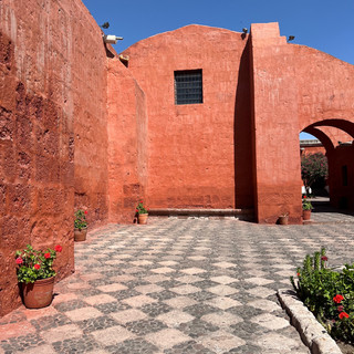 A quick flight from Lima found us in Arequipa, the second largest city in Peru next to Lima. Arequipa is famous for its beautiful Cathedral in the Plaza des Armas square, and the Santa Catalina Monestary. The buildings are white washed stone from local sources and the Cathedral exterior is stunning and particularly so at sunset as it towers above the main square. The monestary was also a highlight with its rust and blue painted walls and museum like set up of how the nuns lived here. There is an active volcano right next to the city and the area is overdue, statistcally speaking, for an earthquake. This caused some angst for me.