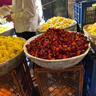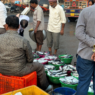 We woke at 5am for a Bombay 'day in the life' city tour. We started with the newspaper delivery people, still sorted and bundled by hand, and still delivered by bicycle and read in print. We then went to the flower and fruit and vegetable markets. A huge veg population, nearly 60%, drives so much demand that the variety and freshness was amazing. Our last stop was the fish markets. I still have fish on my sneakers. I'm not sure it ever leaves you but I also would not have missed it. Women sorting and devaining shrimp on the sidewalks (no plates/no trays/muddy feet), massive fish from stingrays and barracuda to sharks and pomfret. The market was a jaw dropping spectical to us, as we were to the market. The sun was rising when we arrived and the market was nearly done for the day. 4-9 am is the window. It was fascinating but given the filfth of the water and the process of sorting and prepping, it definetly kept me from fish for the duration of our stay in India. On the topic of food, we've been committed to Bisleri water at the recommendation of some US friends with Indian roots. There are two other brands, Himalayan and Kinlay that seem safe as well. We havent strayed here. The water generally smells very bad (like dirty socks, urine and trash to be honest) and the towels are all very grungy looking even in the nicest hotels before you use them. South America was similar in this way. Suffice it to say if there is one thing I have a new appreciation for its our access to drinkable water. I can also count our shower minutes combined within my two hands. Its just a very fast soap and rinse, no breathing. Sounds extreme but the risk of getting sick is just toi great. And if you have a child who loves long showers, there is nothing like a trip abroad to almost anywhere to squealch that habit, but particularly to India or South America. But back to the markets, because if these images don't evoke the sights and smells and sounds of India than nothing will. This was an absolutely amazing experience.